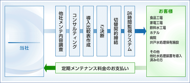 メンテナンスサービスは、お客様の既存の水処理設備のメンテナンスを行うサービスです。